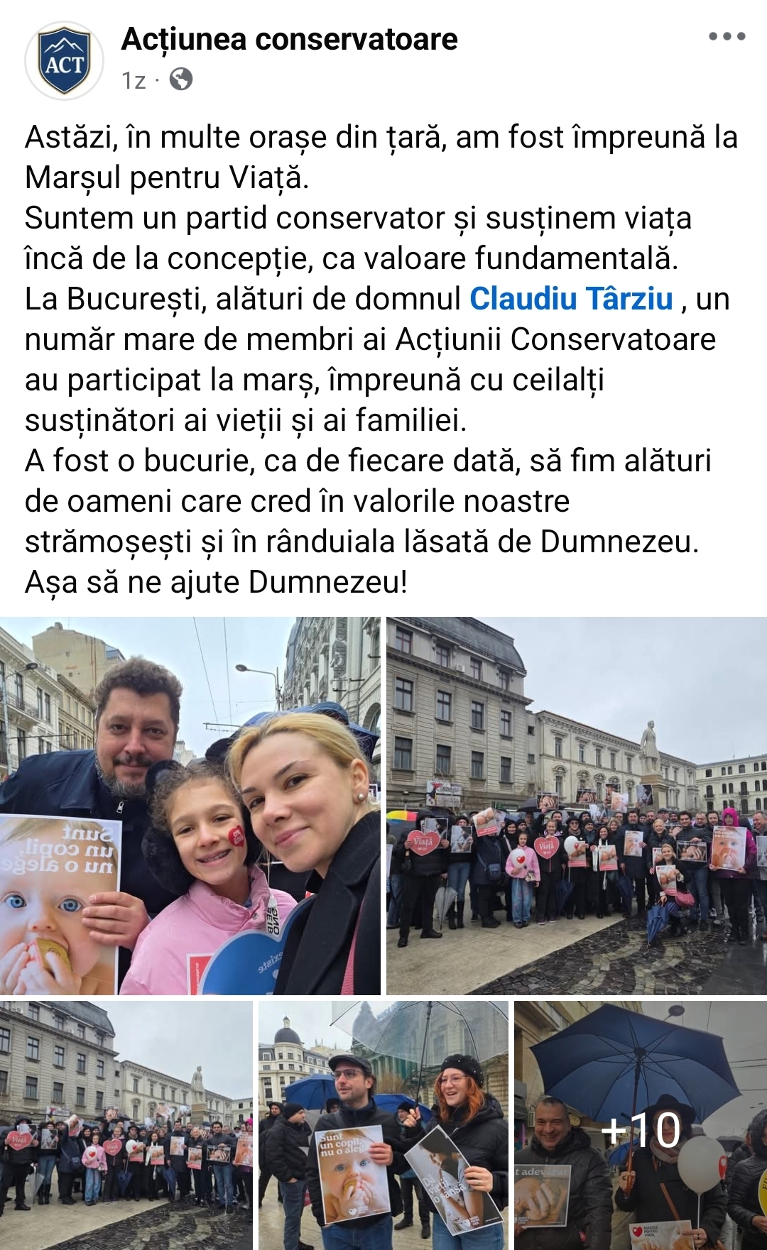 Acțiunea Conservatoare România, condusă de Claudiu Richard Târziu, transmite un mesaj puternic prin Marșul pentru Viață și comemorarea eroilor: credință, familie și identitate națională. Într-o Românie în care valorile sunt tot mai des puse la îndoială, Acțiunea Conservatoare România transmite un mesaj clar și direct: nu renunțăm la identitatea noastră.Prin două acțiuni recente, desfășurate la nivel național, formațiunea condusă de Claudiu Richard Târziu arată concret ce înseamnă implicarea dincolo de discurs. Prima acțiune – participarea la Marșul pentru Viață – a adus în stradă oameni simpli, familii și tineri care cred că viața trebuie protejată încă de la început. Nu sloganuri goale, ci o prezență reală, într-un moment în care societatea are nevoie de repere clare.