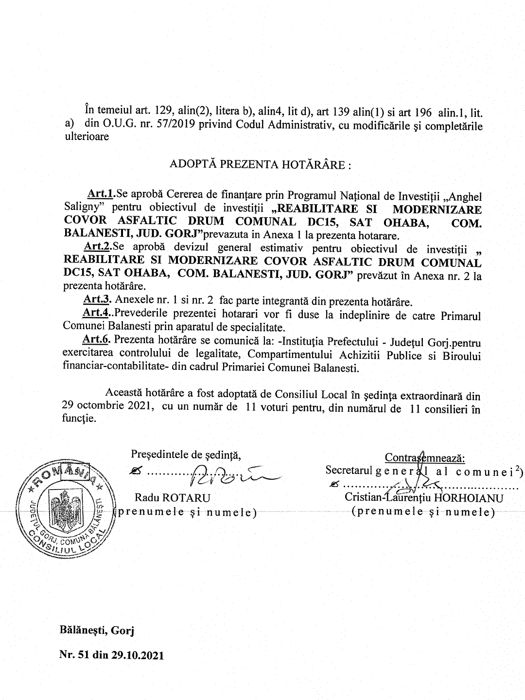 Compania Națională de Investiții a scos la licitatie, pe data de 12 decembrie 2024, serviciile de consultanța pentru proiectul de “reabilitare și modernizare covor asfaltic drum comunal DC15, sat Ohaba, din comună Bălănești”.